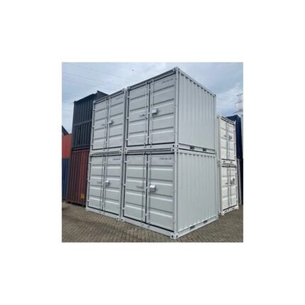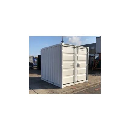 Contenedor de almacenamiento de 10 pies nuevo, ideal como pequeño almacén o contenedor de obra. Dimensiones interiores: 2.896 mm x 2.342 mm x 2.397 mm. Volumen de 16 m³, peso en vacío de 1.000 kg y carga útil máxima de 5.000 kg. Fabricado en acero de alta calidad, suelo de madera, caja con cerradura y bolsillos para carretillas elevadoras. Disponible en varios colores RAL bajo pedido. Sin placa CSC (no apto para transporte internacional). Perfecto para almacenamiento en patios, obras, comercios o particulares. Entrega rápida en 4-5 días a toda España.