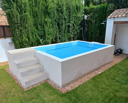 La Piscina de poliéster elevada Carmela demuestra que no hace falta un gran espacio para disfrutar de un baño refrescante con todas las garantías de calidad y seguridad.