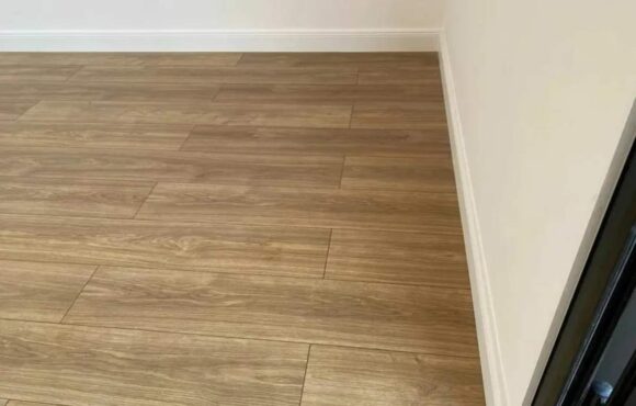 - Suelo nuevo de vinilo con efecto madera en toda la superficie.