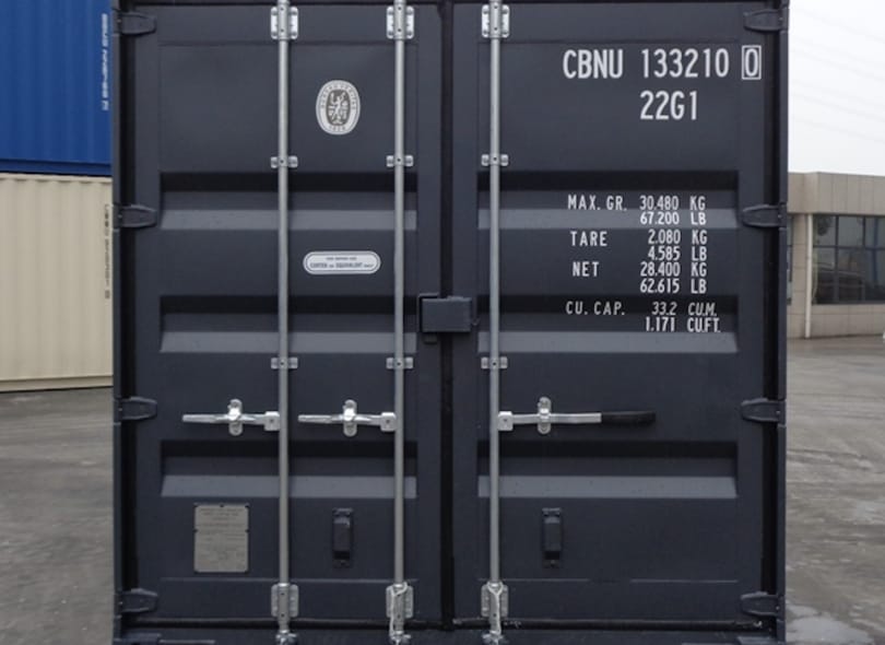 El contenedor está equipado con dos puertas robustas que se abren hacia el exterior por un solo lado, con un sistema de cierre seguro que incluye 4 pestillos verticales. Las puertas se abren hasta un ángulo de 270 grados.