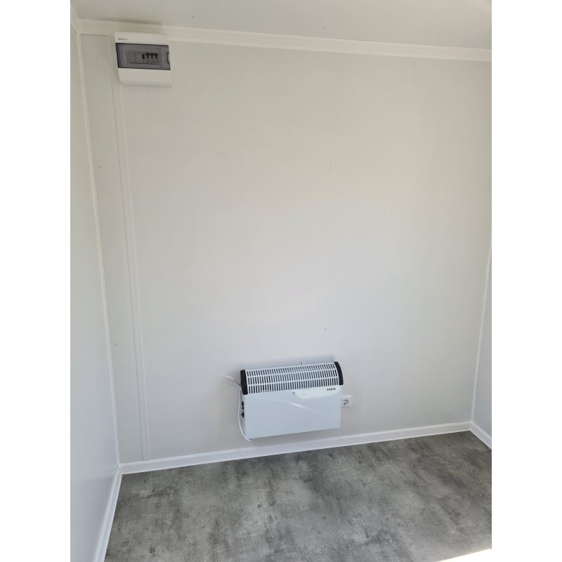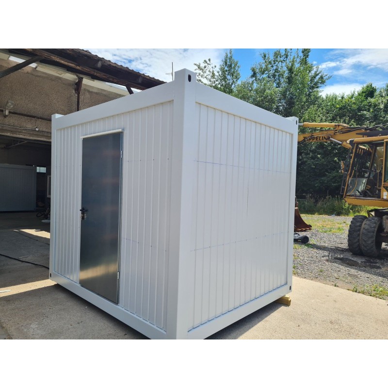 Contenedor oficina de 10 pies (3,00 x 2,45 x 2,60 m) fabricado con estructura de acero y paneles sandwich de alta calidad. Aislamiento de lana mineral de 50 mm en paredes, techo y suelo. Incluye 1 puerta de acero (90×200 cm), 1 ventana oscilobatiente de 140×120 cm con persiana de aluminio, instalación eléctrica completa con 4 tomas Schuko, 1 lámpara LED y cuadro de protección. Acabado exterior en chapa trapezoidal color RAL personalizable. Suelo de PVC industrial resistente. Ideal para oficinas de obra, puestos de control, vestuarios o espacios comerciales. 10 unidades disponibles. ¡Entrega garantizada!