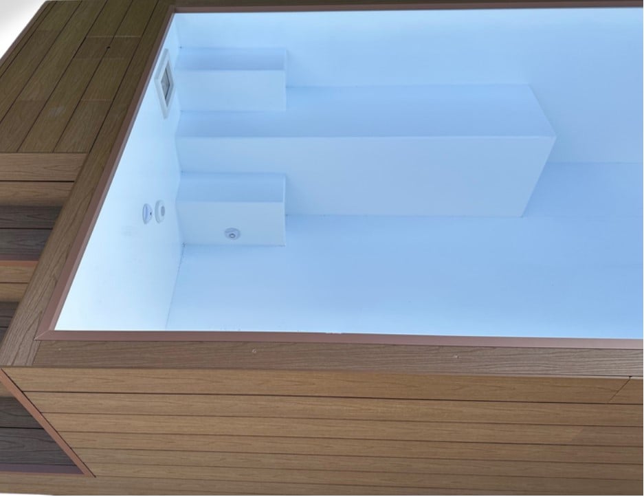 Piscina Contenedor ICONIC 4,26m – Composite Teca con Banco Integrado
