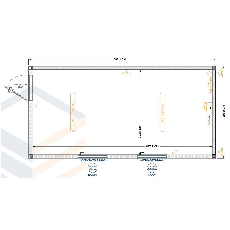 Unidad de stock 6×3 metros con ventanas lado largo izquierdo